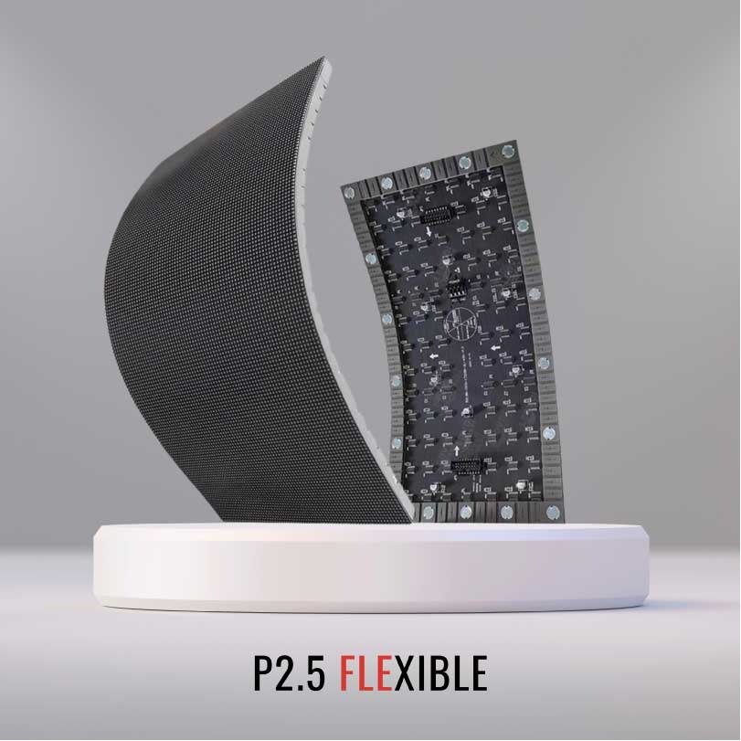 A P2.5 indoor flexible LED module is a high-resolution display solution designed for creative and curved installations in indoor environments. These modules offer sharp image quality suitable for close-viewing applications such as retail displays, exhibitions, and stage backdrops.
